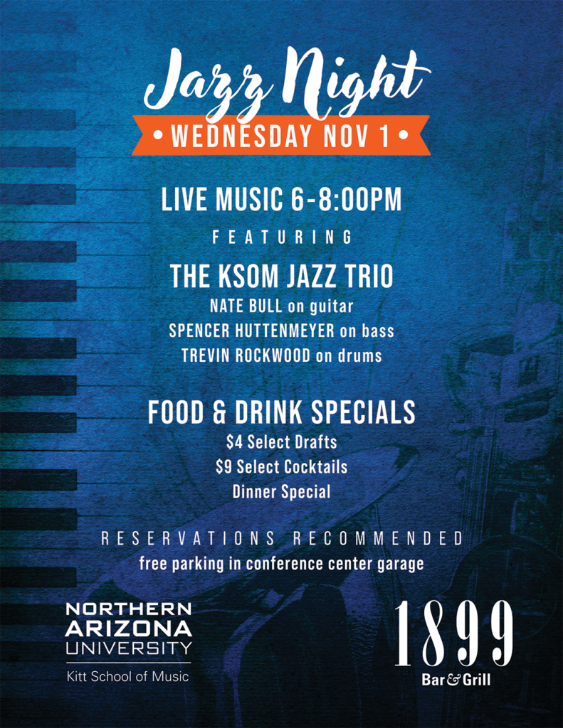 Don’t miss this amazing Jazz trio along with food and drink specials.